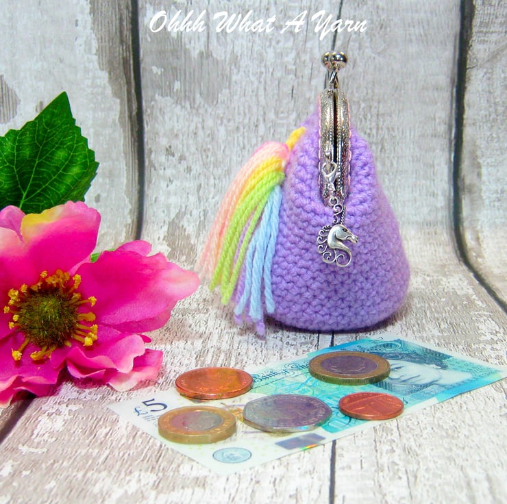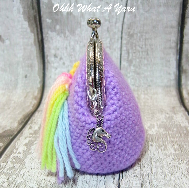 Crochet, crocheted unicorn coin purse. This gorgeous unicorn coin purse is crocheted using 100% acrylic yarns.
