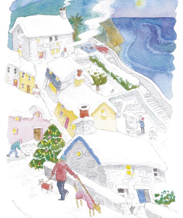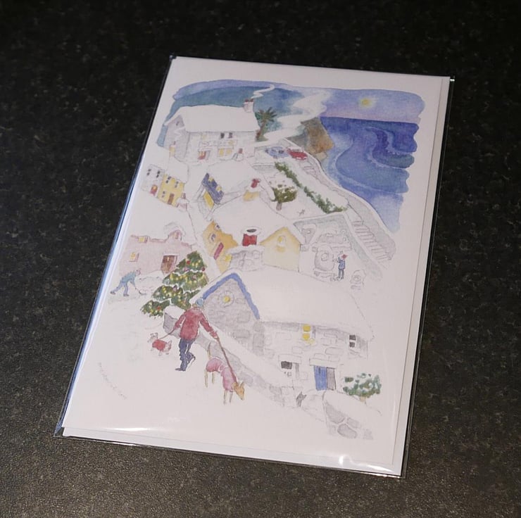 Taken from a watercolour drawing, this celebrates a wintery Cornwall.