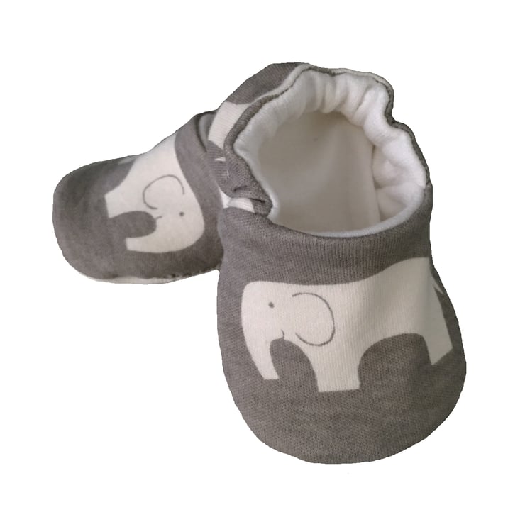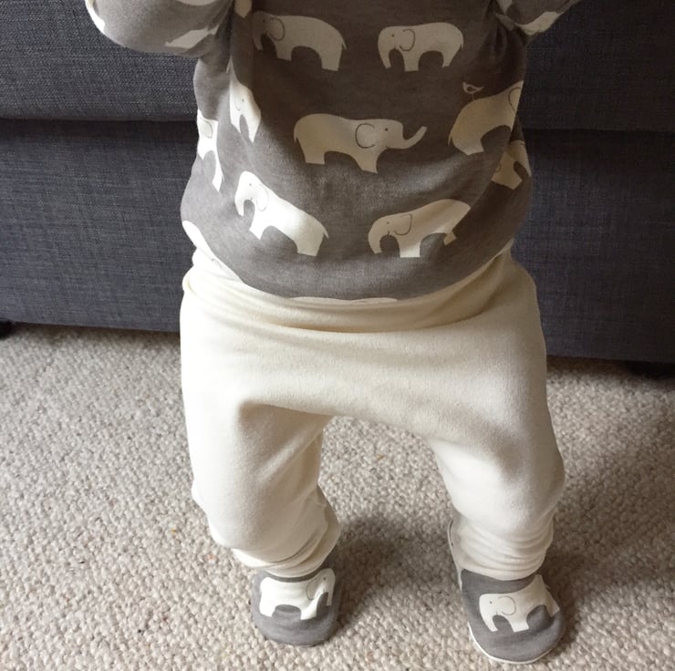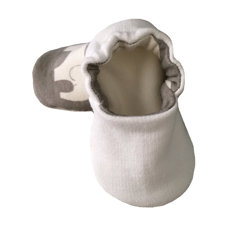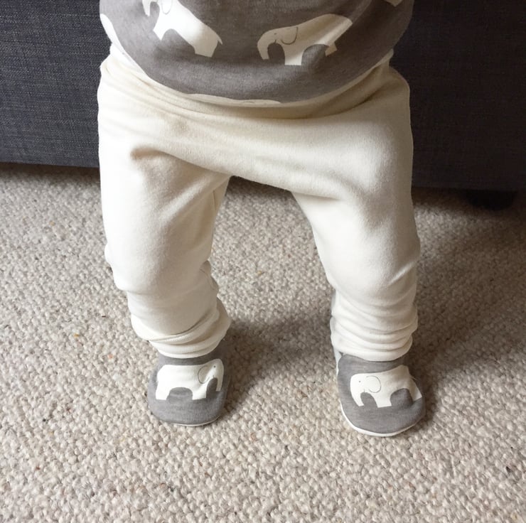 ORGANIC SHOES in a super cute cream & brown Elephant print. The Shoes outer are made from 100% Certified ORGANIC Cotton Knit (GOTS) which is printed with low impact dyes and kind to skin. Fully lined with NO raw edges (pic 3) in a luxurious organic bamboo cotton & 100% organic cotton lining with elasticated heel - ensuring comfort for your little one.