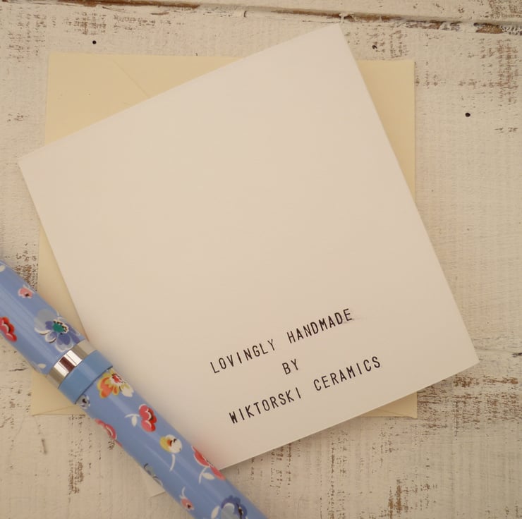 Welcome to my shop Wiktorski Ceramics. Here you will find a variety of hand made products including pottery and cards. Each piece is made purely by hand and each glaze I apply is weighed and mixed by my own fair hands, similar to baking a cake. I was taught the traditional way and each glaze has taken many years to perfect. This makes it totally unique to Wiktorski Ceramics. Each piece is a one off and will not be seen again. I hope you enjoy browsing my shop and please do get in touch if you have any questions.