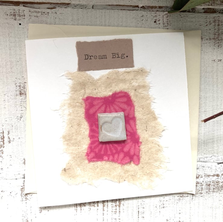 This gift card is perfect to give as a card and gift rolled into one. I have attached a one-off ceramic design to each card so this can be received as a card. The piece of pottery can then be framed and made into a bespoke picture.