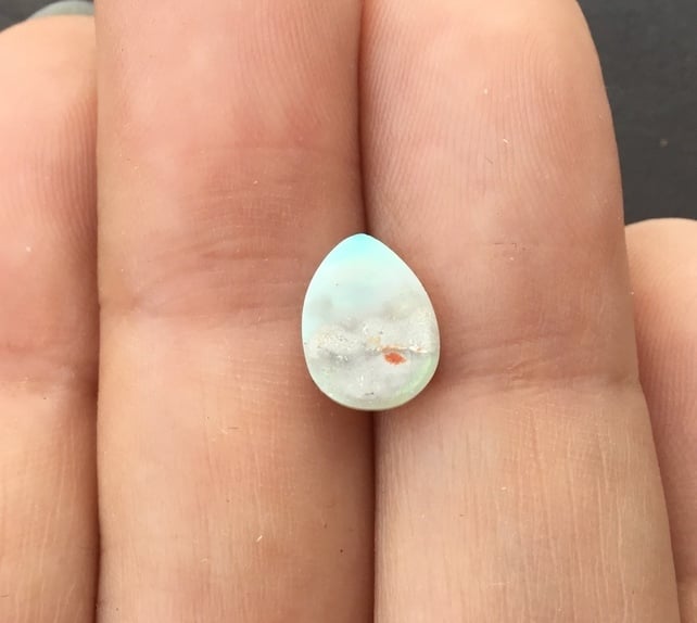 A beautiful White Crystal Opal Cabochon, from Lightening Ridge, Australia, ready for jewellery designers to create something stunning.
