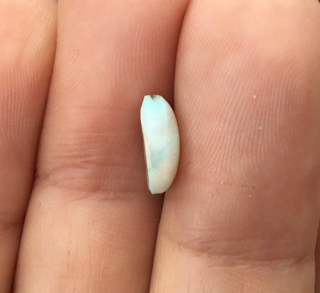 A lovely white Crystal opal with lots of green, blue and yellow as well. A real rainbow of colour play within this gemstone. Dependant on how the designer backs this item, more or less colour play will show. I leave that in the hands of the professionals, but think it would make a fantastic focal centre point in a pendant or ring perhaps.