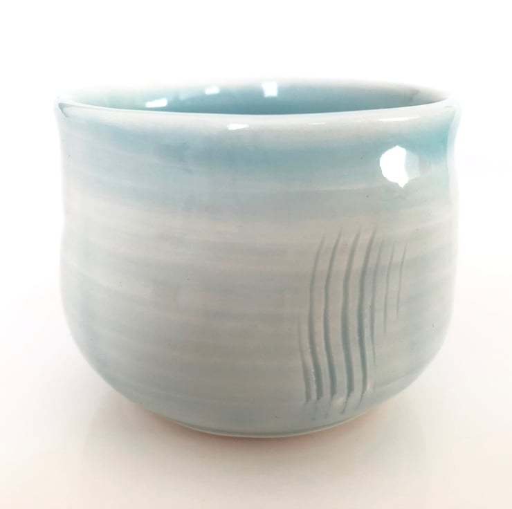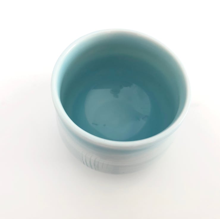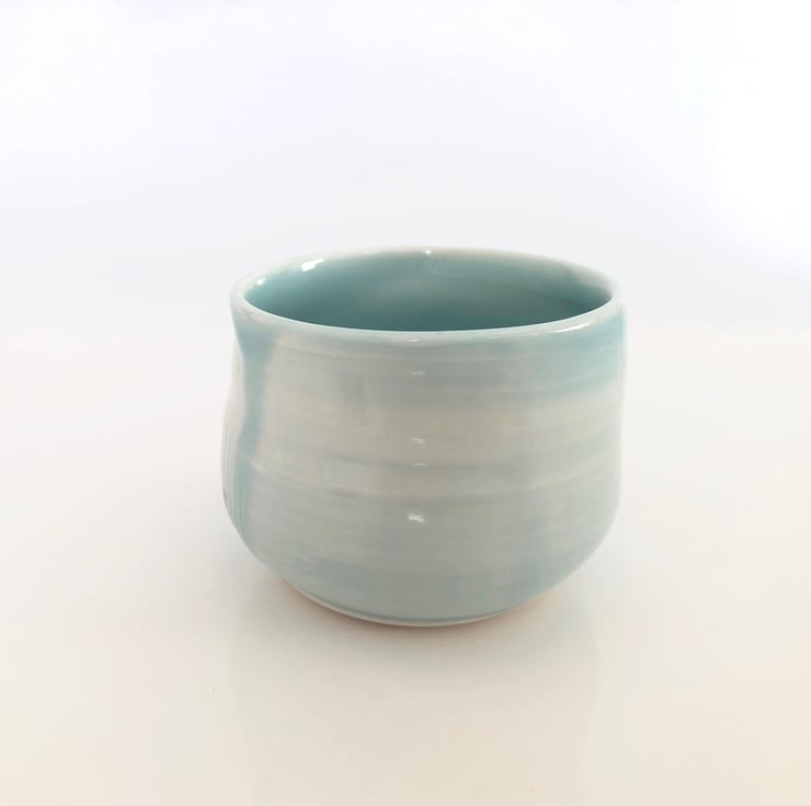 A lovely eggshell blue small porcelain cup, wheel thrown and altered.
