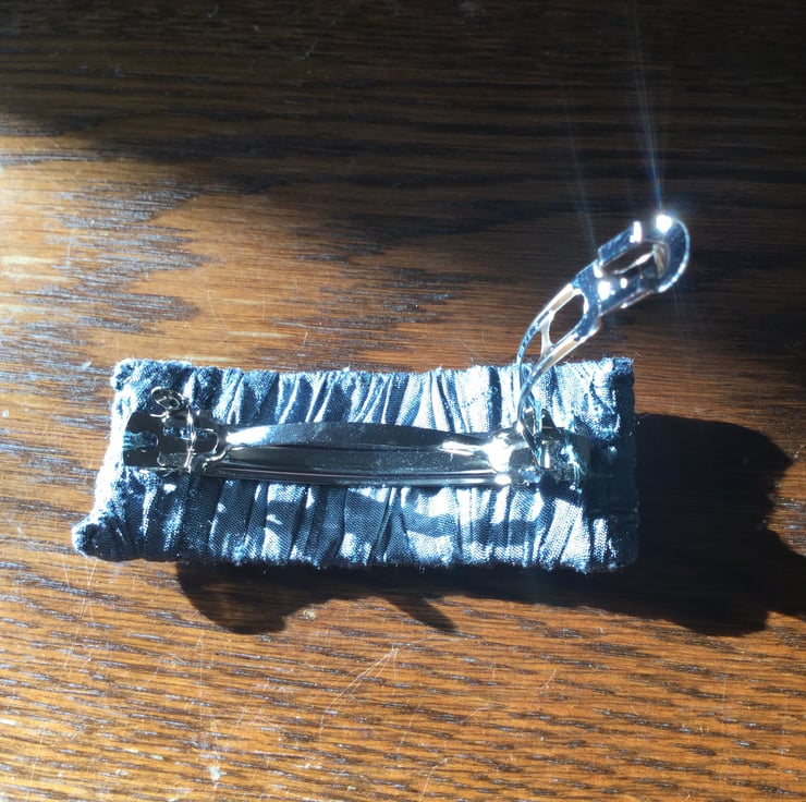Hand Smocked and Beaded Grey Blue Silk Hair Clip, H6