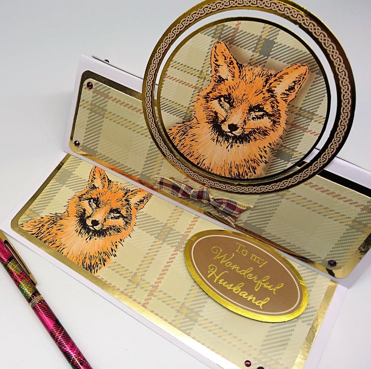 "To My Wonderful Husband" Foxy Handmade Greeting Card. Suitable for Birthday, Anniversary or any other appropriate occasion.