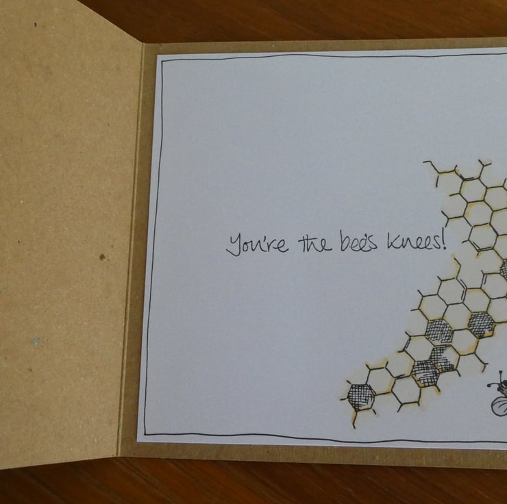The inside is also stamped and coloured and has the phrase 'you're the bee's knees', leaving space for your own birthday message.