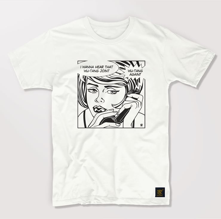 Men's cotton T shirt of a Pop Art inspired Wu-Tang Clan piece featuring "Protect Ya Neck" lyrics, the debut single released on the Wu's first critically acclaimed album "Enter the Wu-Tang (36 Chambers)". Drawn in the comic book style based on Secret Hearts Issue 88 published in 1963.