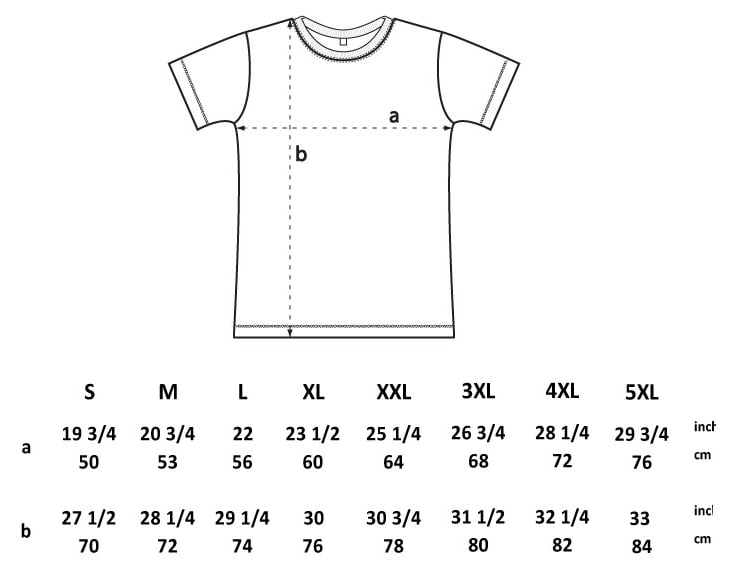 Men's T shirt chest sizes