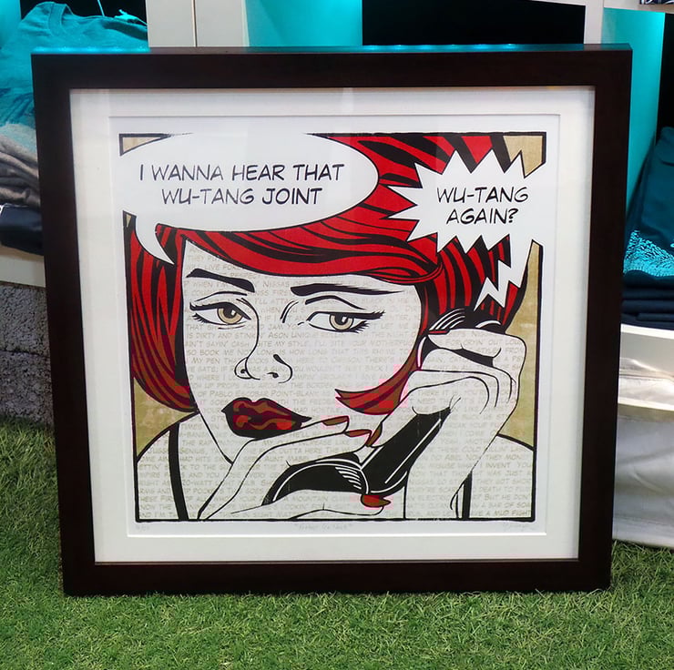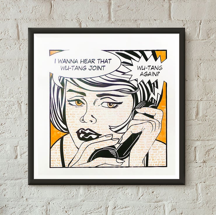 Pop Art inspired screen print art features "Protect Ya Neck" Wu-Tang Clan lyrics and Roy Lichtenstein style execution.