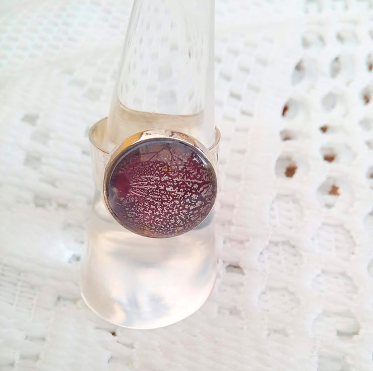 This very pretty adjustable ring would make an ideal gift for a friend or relative for a birthday or Christmas, or it would make a nice treat for yourself. It would go well with any of your Spring or Summer outfits for a day out, for a casual party, or for everyday wear. This "mystical" fantasy ring has an adjustable base so it will fit most sized fingers and it has a 15 mm round purple dragons eye cabochon set on it. The ring base is silver plated. The ring will be dispatched wrapped in tissue paper in an organza bag and delivered to you via Royal Mail first class post. The actual shade of the cabochon may vary depending upon your monitor set up.
