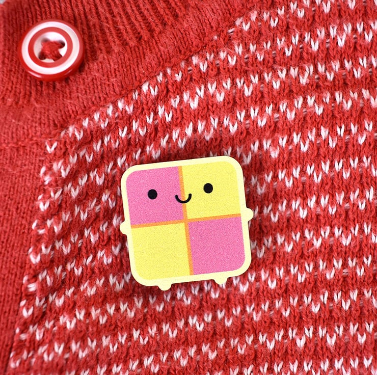 Have a sweet treat every day with a kawaii Battenberg cake pin. Battenberg cake is a British classic with its colourful pink and yellow design and perfect for birthdays and afternoon tea. Makes a great gift for bakers, foodies and anyone with a sweet tooth.
