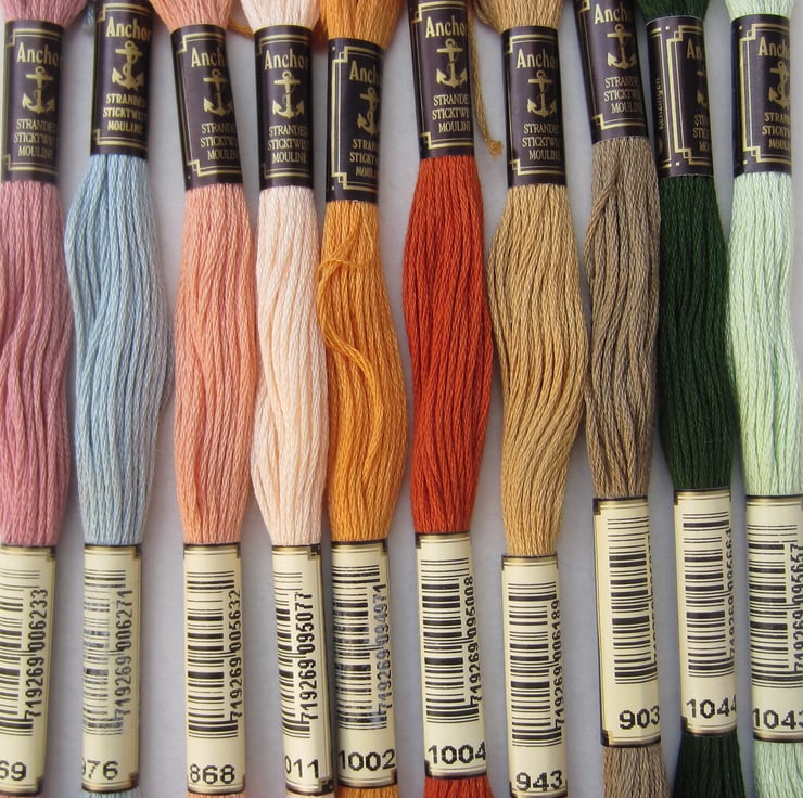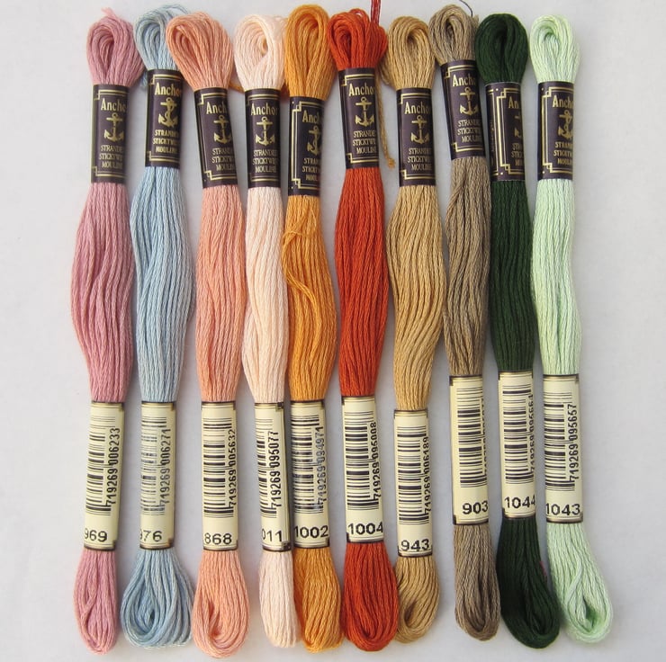 Selection of 10 Anchor embroidery threads in assorted colours.