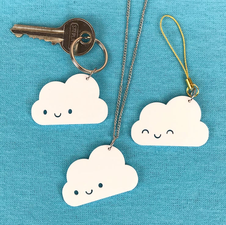 Cute keyrings featuring my happy kawaii clouds with two happy faces to add a touch of cute to every day. A split ring is attached ready for your keys and you can also use as a bag charm, or even remove the split ring and add a chain for a necklace.