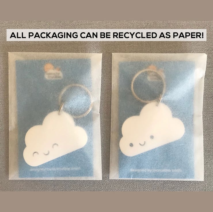 Keyrings are packaged on a backing card inside a translucent glassine bag, which can all be recycled as paper.