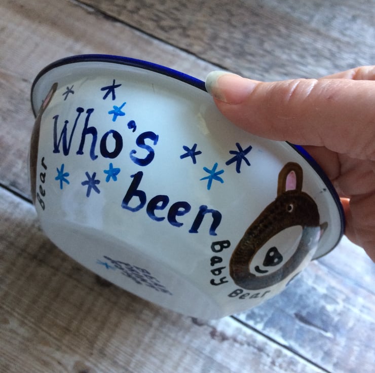 This bowl is the perfect size for a steaming serving of porridge! However you like yours, you will enjoy eating your morning meal out of one of these. Decorated with The Three Bears and a sprinkling of stars, there’s a real danger this could become a family heirloom as enamel is virtually indestructible. Because it's hand painted, each bowl will be slightly different and therefore unique. Suitable for all users, even Goldilocks providing she uses her own porridge oats!