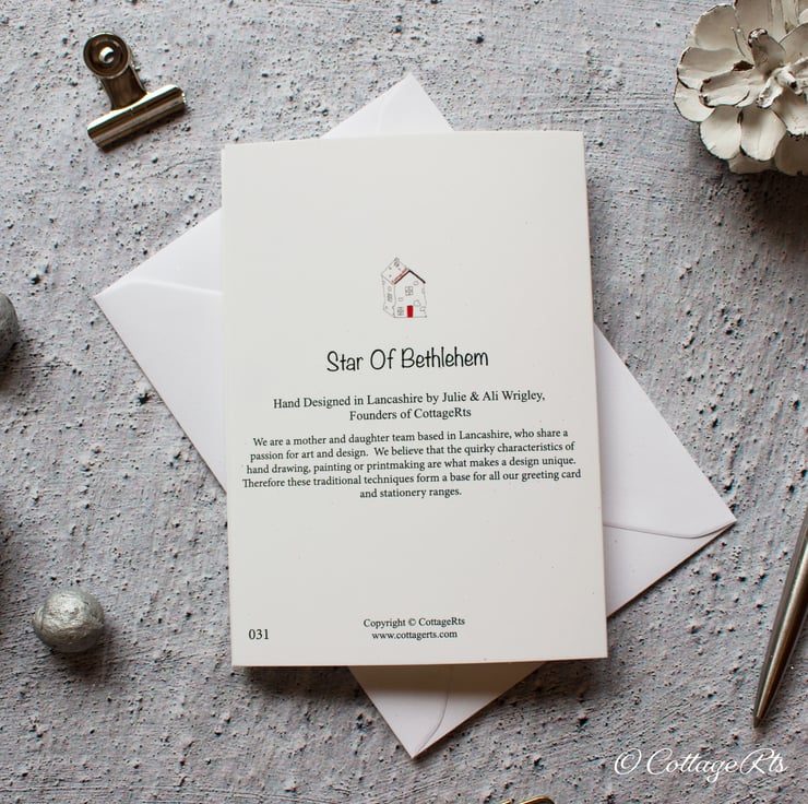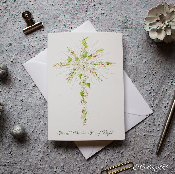 The Star Christmas card has been designed using our original hand painted watercolour floral Star of Bethlehem. The design was then printed on to 300gsm card before being hand finished with glitter. The pack contains 6 cards.