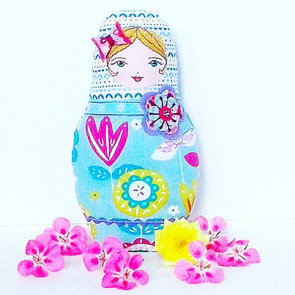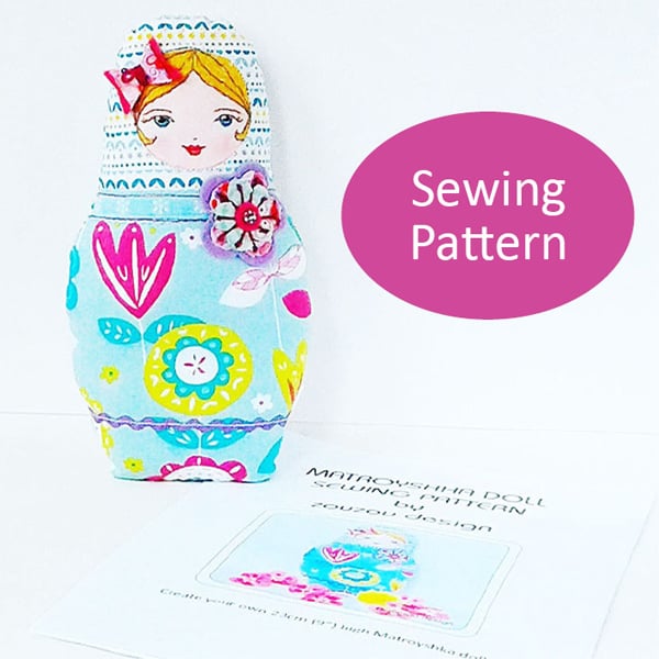 This Matryoshka doll sewing pattern includes a doll face template to embroider (see last image) and also works in conjunction with Zouzou Design's Fabric Craft doll faces (see doll in second last image made using our fabric doll faces).