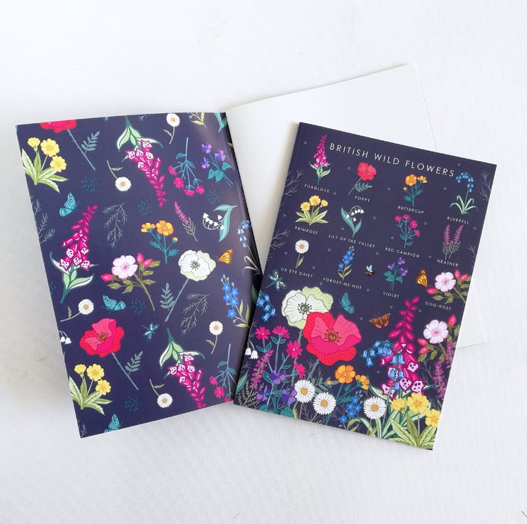 - British Wildflower Guide : with a field guide of 12 species of wildflowers on the cover. On the inside front and back cover there is a pretty pattern using the wildflowers featured on the front cover guide.