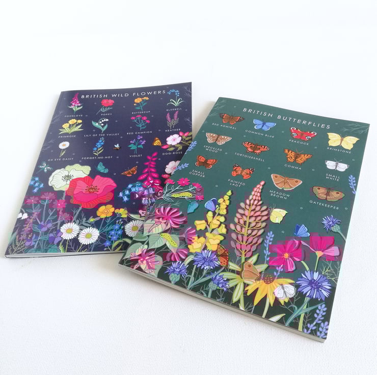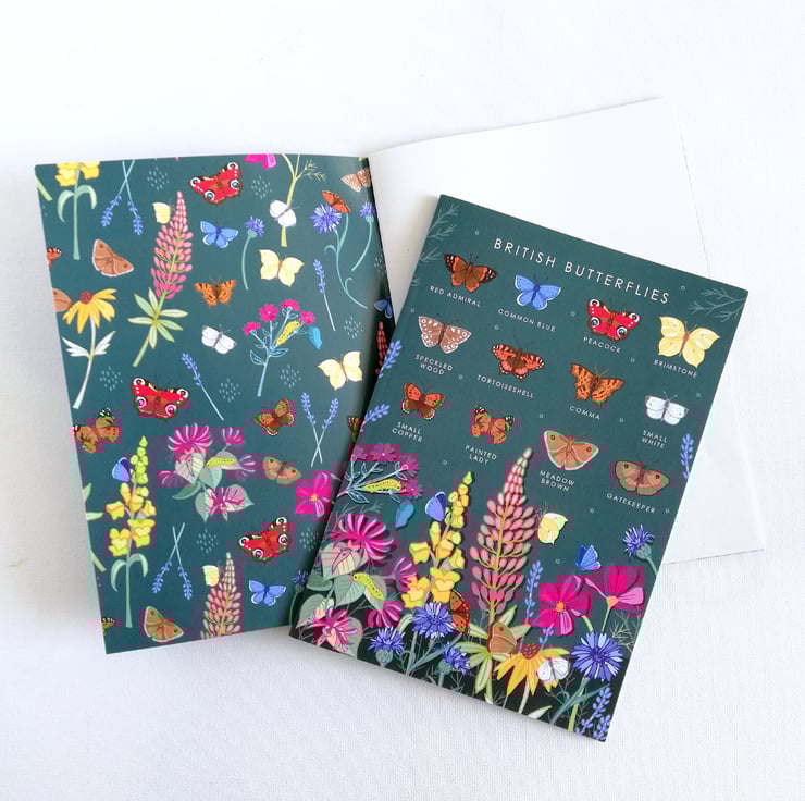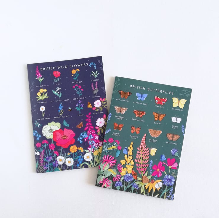 - British Butterfly Guide : with a field guide of 12 species of butterflies on the cover. On the inside front and back cover there is a colourful pattern using the wildflowers and butterflies featured on the front cover guide.