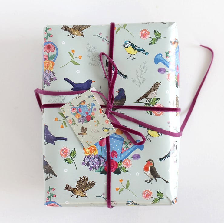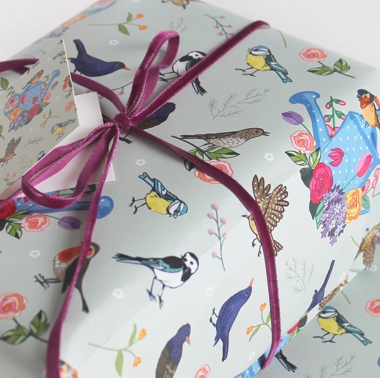 British Garden Birds Gift Wrap pack of 2 Sheets with 2 tag