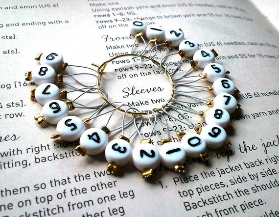White 6mm acrylic number beads. Comprises of two sets of numbers 0-9 so up to 100 rows can be counted.