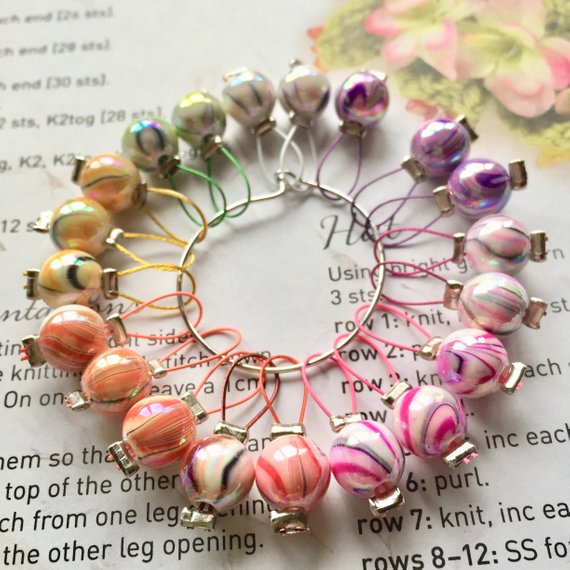 A set of 20 acrylic 8mm beads in various swirling colours all on complementing coloured wires.