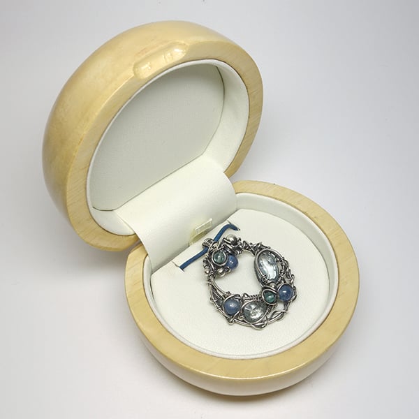 Individual pendants may vary slightly due to the natural qualities of the stones and the freeform method of wire weaving.