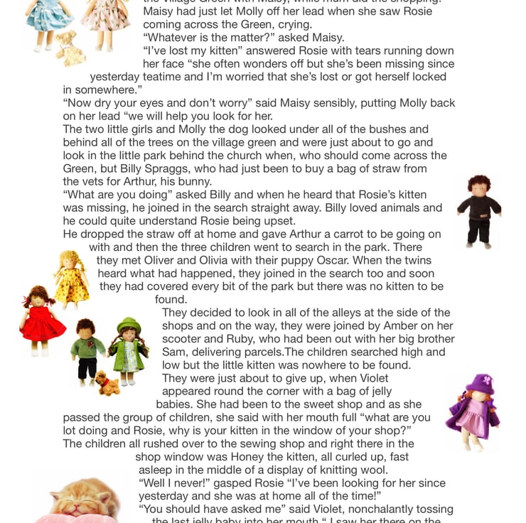 There are other children in Maisy’s class at Mulberry Green Infants’School - Violet, Billy, Amber, Rosie, Tilly, Amelia, Ruby, Marigold and twins Oliver and Olivia, who have a puppy called Oscar. The children are all 26cm tall, Baby Daisy is 16cm and the dogs are just 8cm. Maisy and Mo love nothing more than having adventures with their friends.