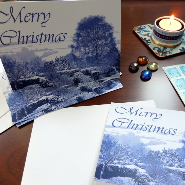 The image has been digitally created from one of my original photographs and shows a wintry countryside covered in snow. The blue colour adds its own icy touch!