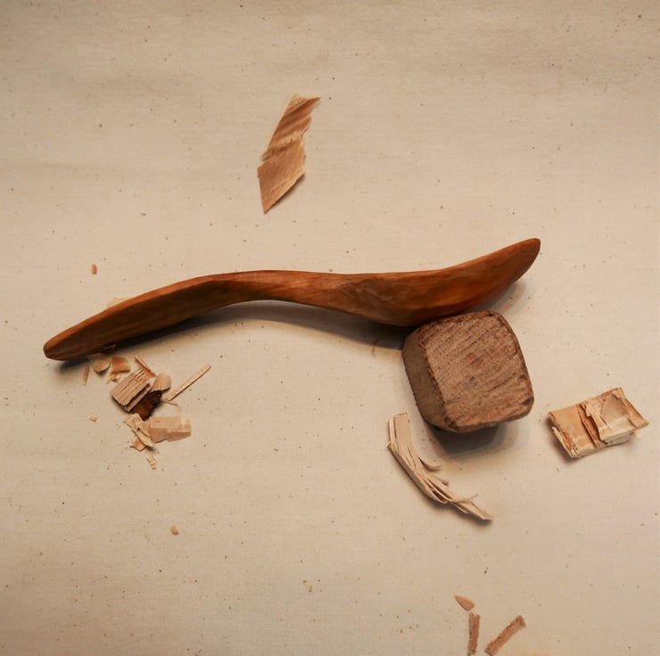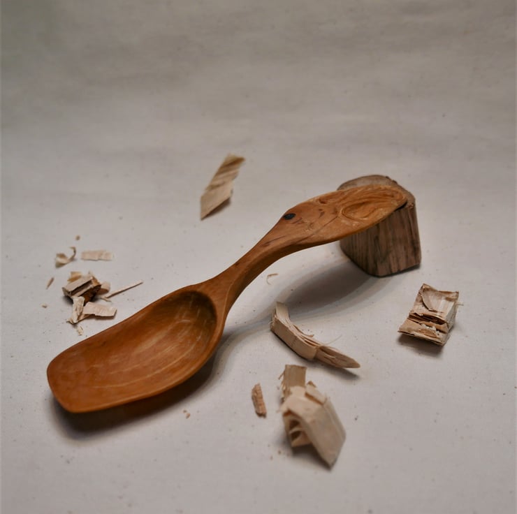 An wooden eating or cooking spoon handcarved from silver birch wood.