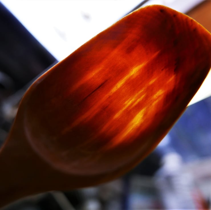 As always.... just rinse and wipe to best care for a wood spoon. Don't leave it soaking in hot dishwater or destroy it in a dishwasher machine...it doesn't enjoy or need such zeal. Every now and then (probably once a month when in daily use), I rub some culinary linseed or walnut oil into it when it has dried to replenish the wood.