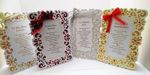 "To My New Parents" and "To a Special Grandmother" - Each verse is slightly different.