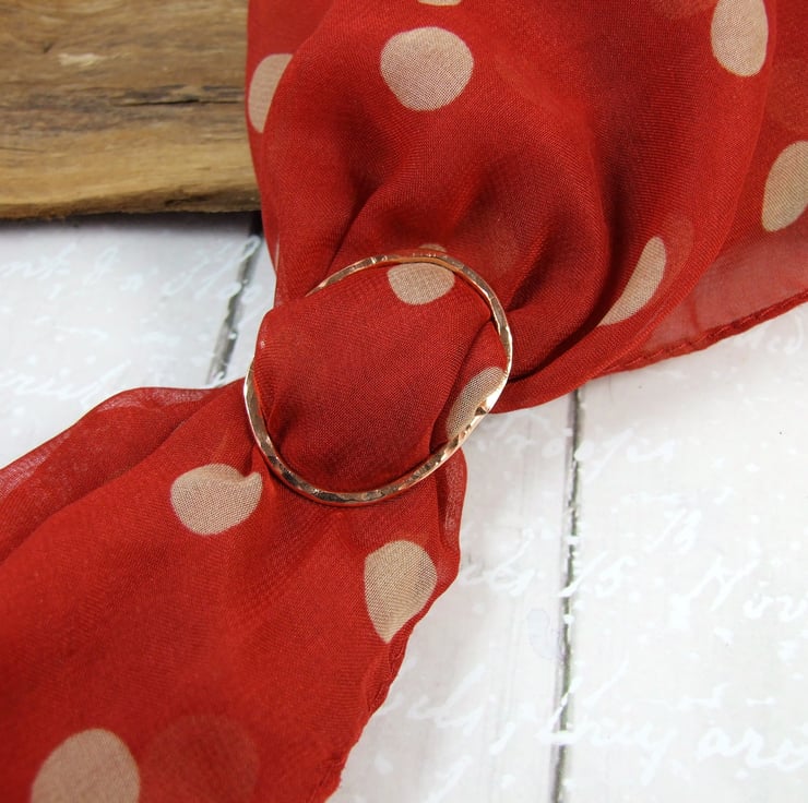 Hand forged hammered Copper Ring for Silk, georgette or skinny Scarf.
