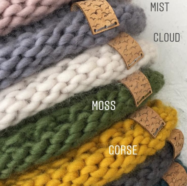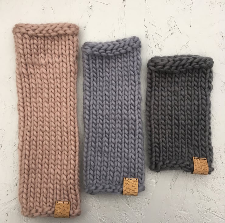 Available in three lengths: short (approx. 15cm/6”) medium (approx. 20cm/8”) and long (approx. 25cm/10”). Matching hats, cowls and scarves also available.