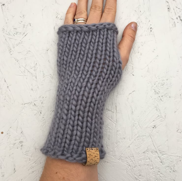 Hand knitted 100% merino wool wrist warmers / fingerless gloves - medium length (20cm/8”)