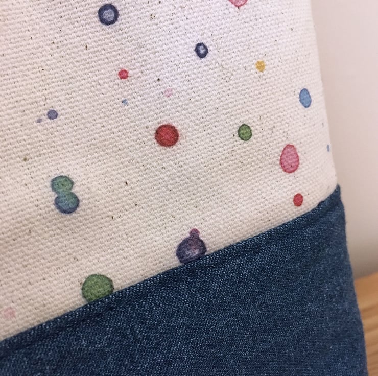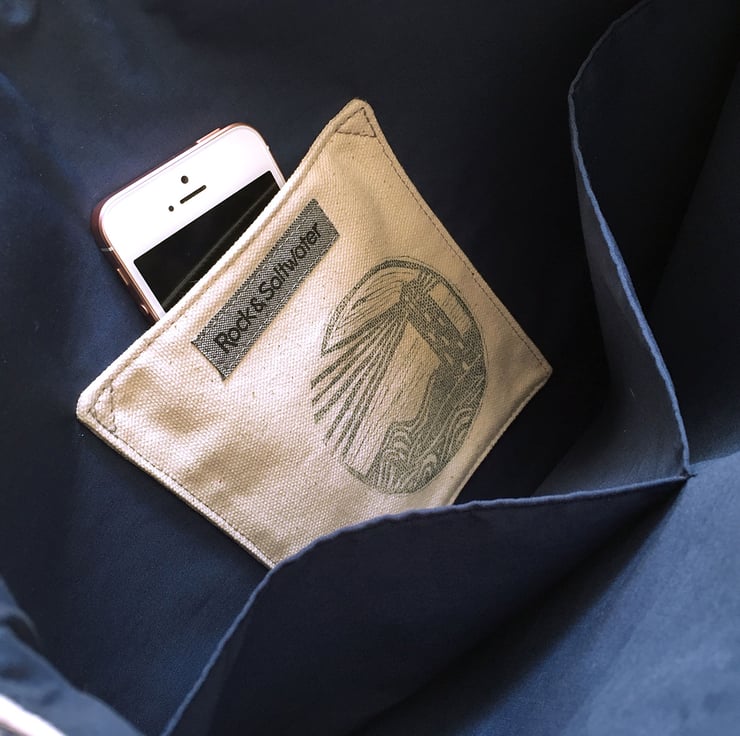 Our paint print design is teamed with a mid-blue washed denim for the base and reverse side of the bag. Lined with navy blue cotton with three interior pockets – two large and one small. The small pocket features our lighthouse lino print and is the ideal size for a mobile phone, keys, or any small item that you need to have easily to hand.