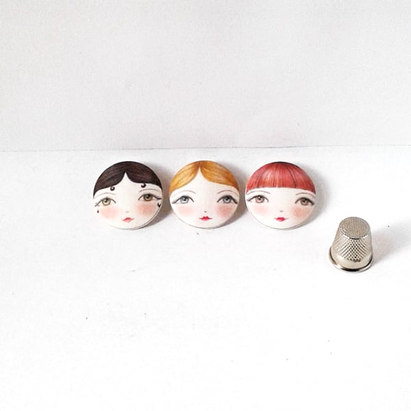 THIS LISTING IS FOR 3 DOLL FACE BUTTONS ONLY