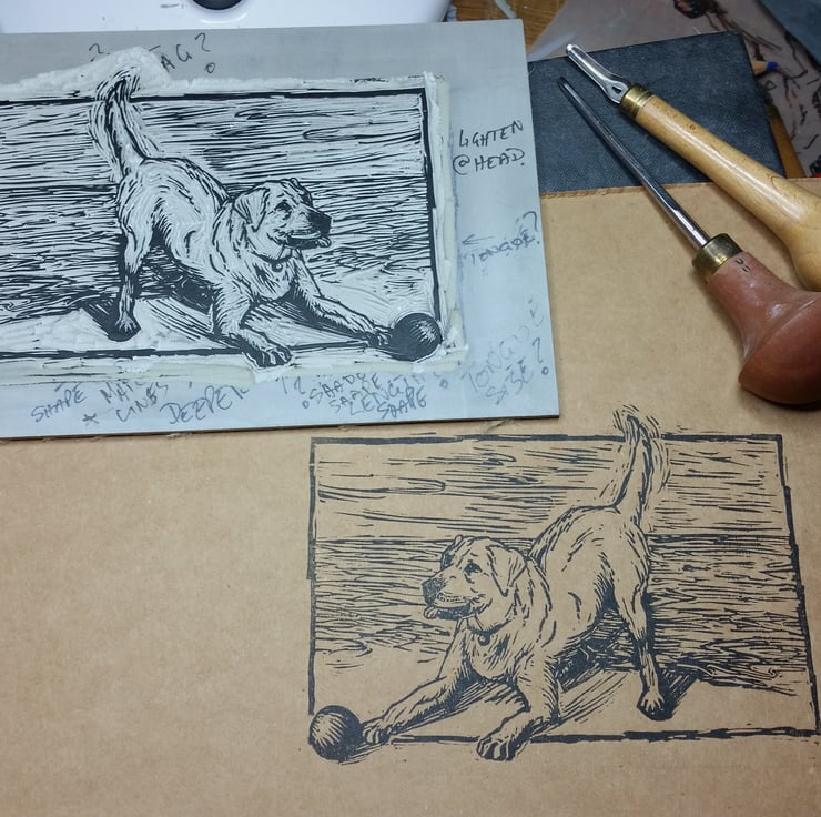 When designing my linocuts I like to keep them as close to my pen sketches as possible to keep that loose spontaneous