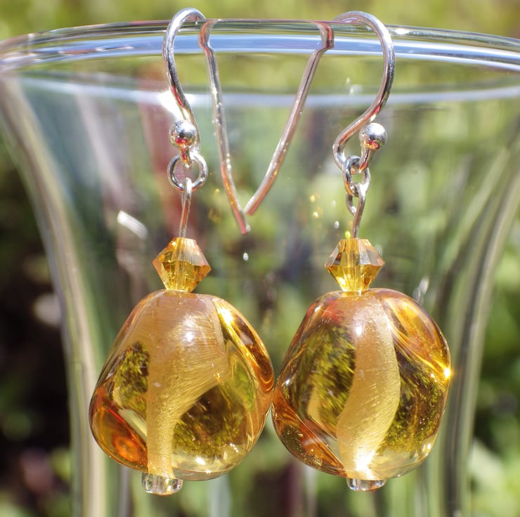 Total earring length is approximately c.35mm. Each lampwork nugget is c.14mm wide by c.14mm long.