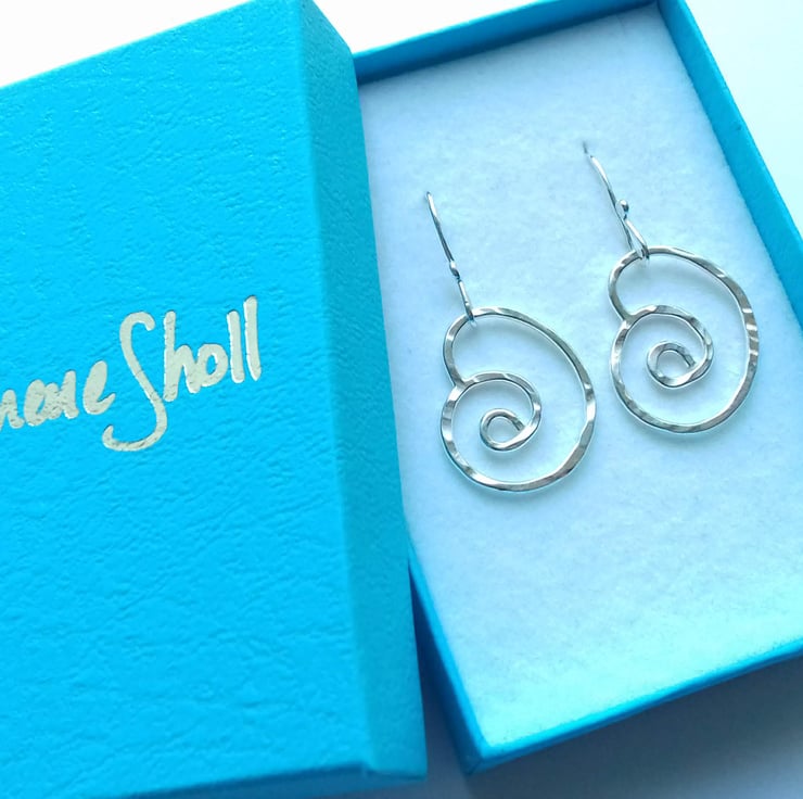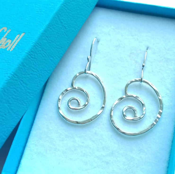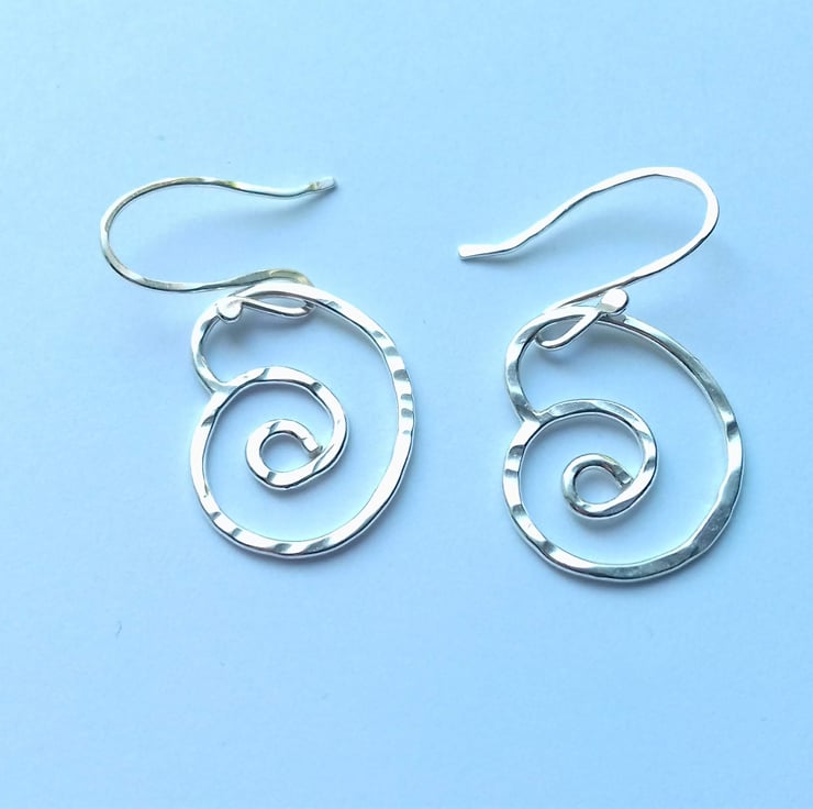 Cute little hand forged spirals, each one individually made from sterling silver and bears the hammer marks of the process as a feature of the design.