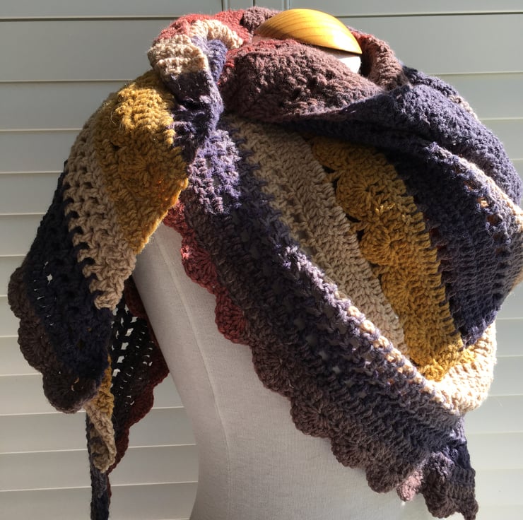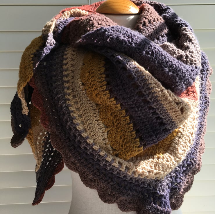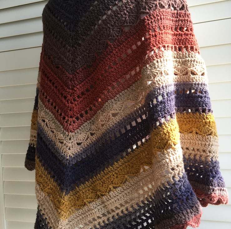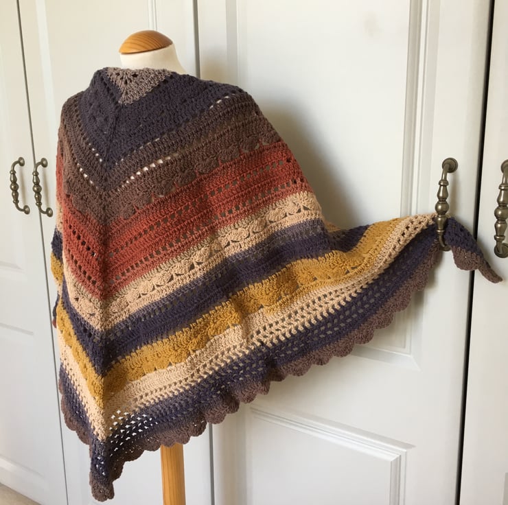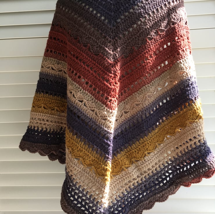This is a closed stitched shawl in DK acrylic yarn so it should keep you or your loved one warm.