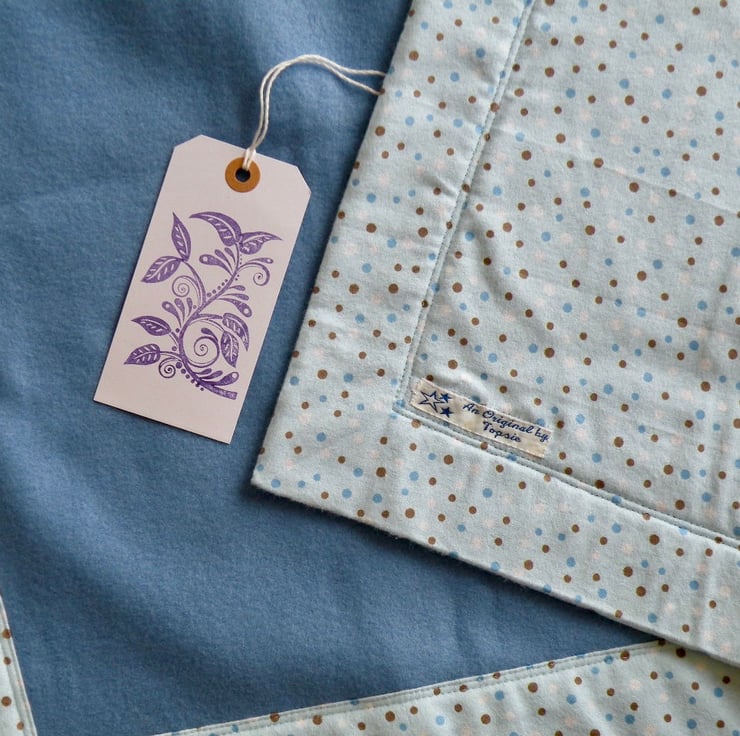 You will keep your baby or toddler really warm with this Blue Spots blanket made from Fleece material (with brushed cotton backing) in a spot pattern. It was hand-made by me and is idea for either a little boy or girl.