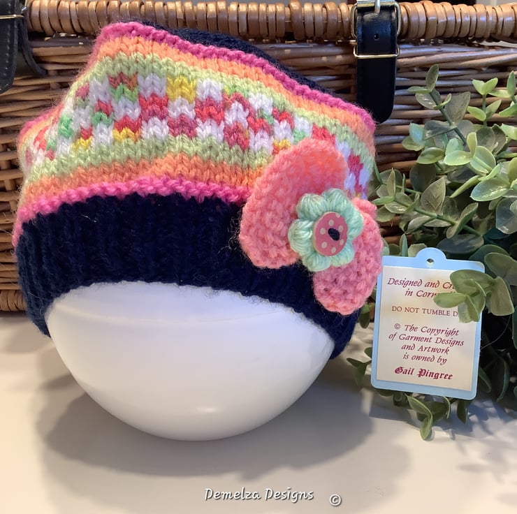 Designer Hand Knitted Fairisle Girl's Beret Style Hat 1 - 2 years size