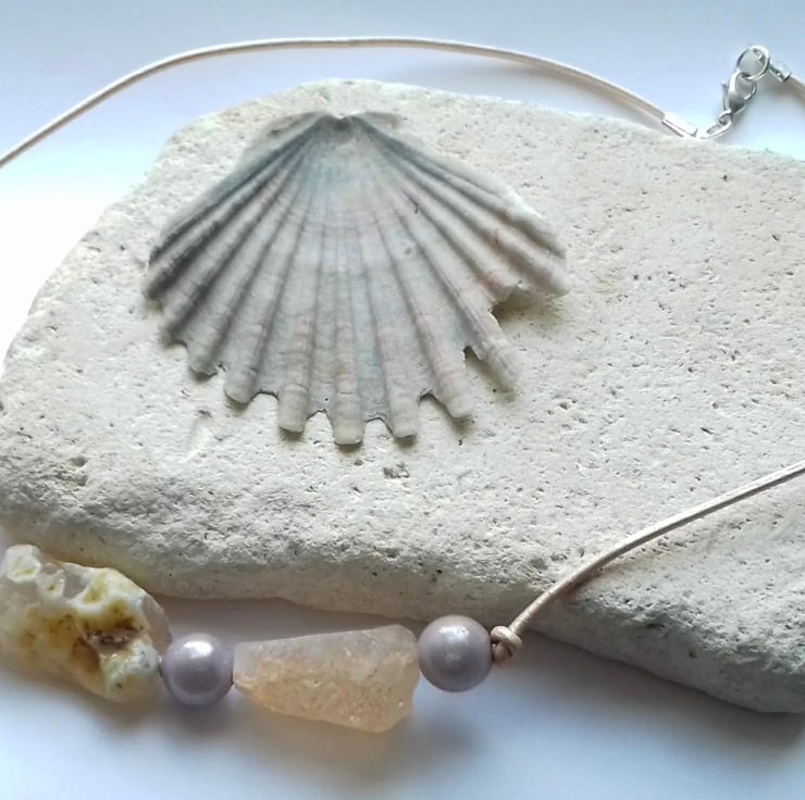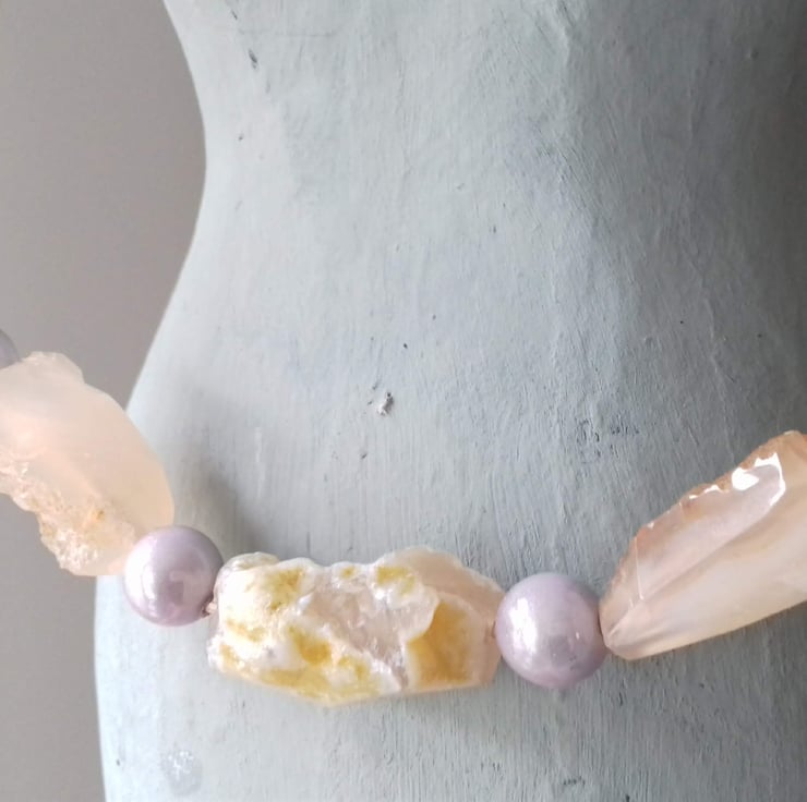 Gorgeous big chunks of raw opal interspersed with light reflecting miracle beads. This is a fabulous statement necklace with gorgeous colours.