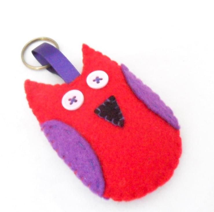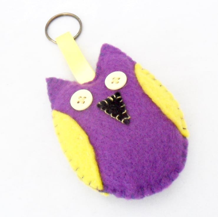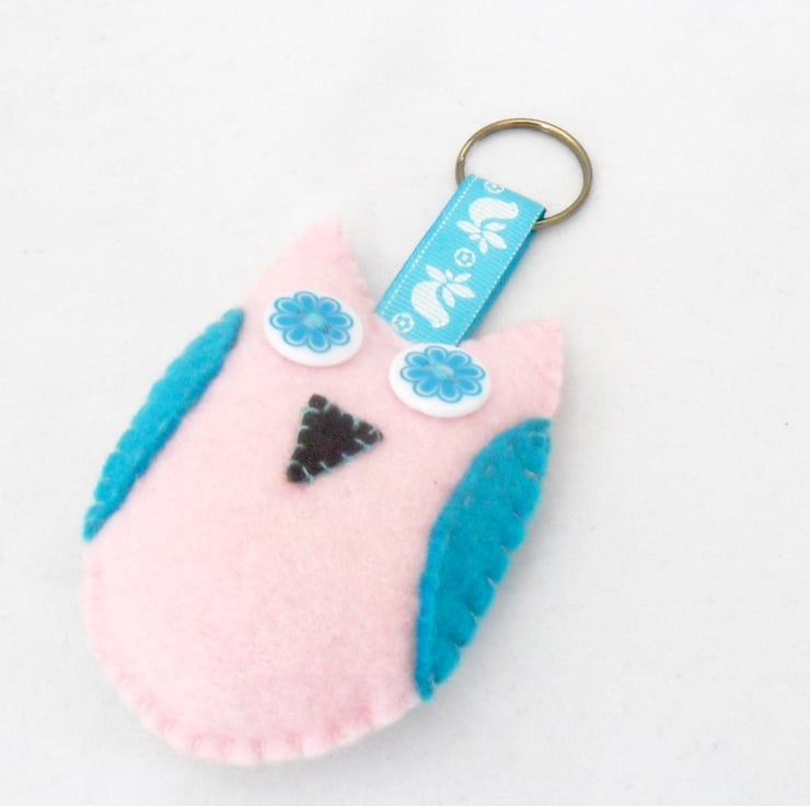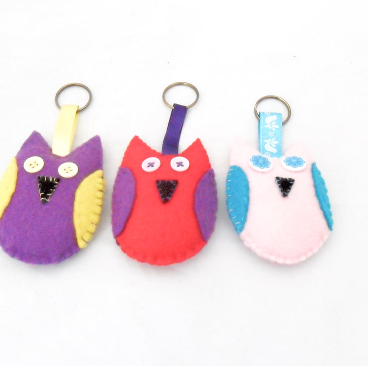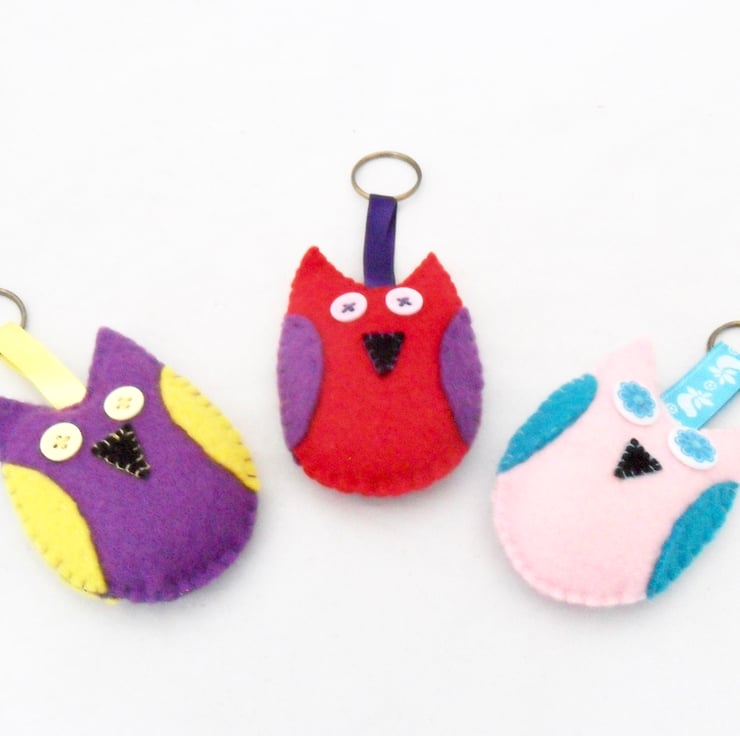 Handmade felt owl keyring available in three colour ways.