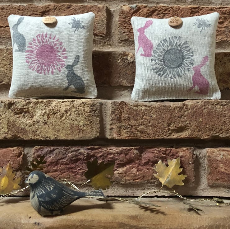 A hanging Lavender sachet constructed from a beautiful linen fabric which I have block stamped with a typical countryside theme.Embellished with a ' Hand Made' wooden tag.Generously filled with fragrant Cotswold lavender.A lovely item perfect to fragrance wardrobes,drawers, boot/utility rooms or alternatively just hang as a decorative item in your home.