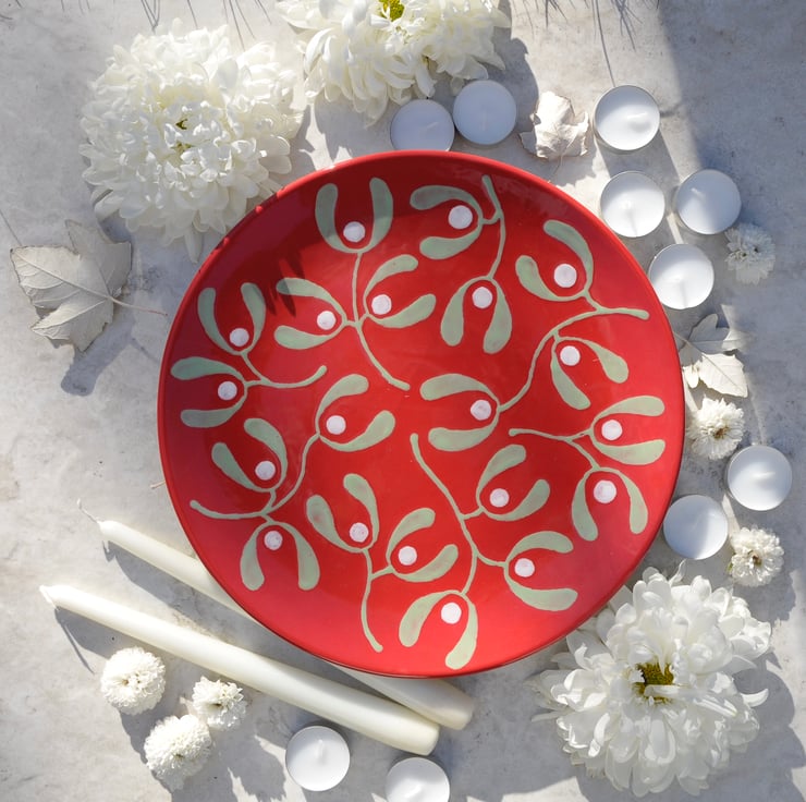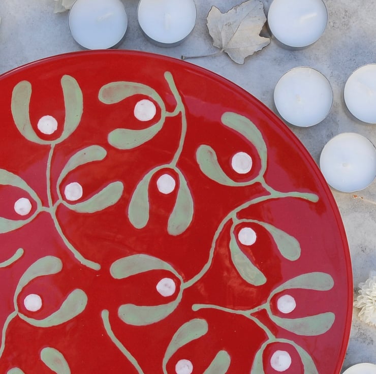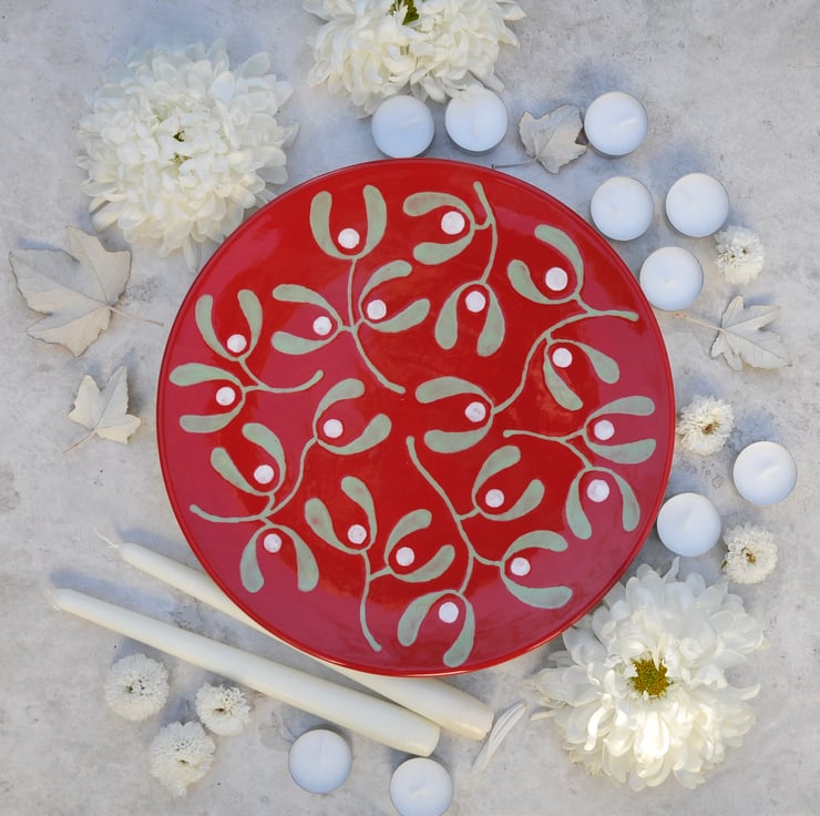 This Red Mistletoe platter would be perfect for a center piece on the Christmas table with Candles, Christmas Cake, Pudding or mince pies.