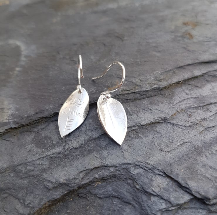 These sweet Willow earrings are made from Fine Silver and hang from sterling silver ear hooks.