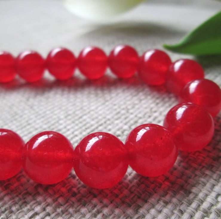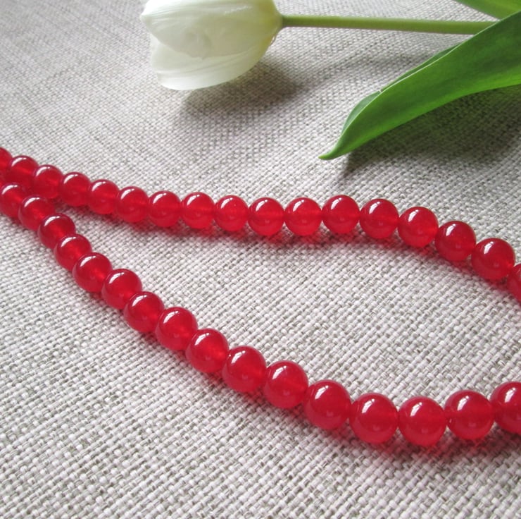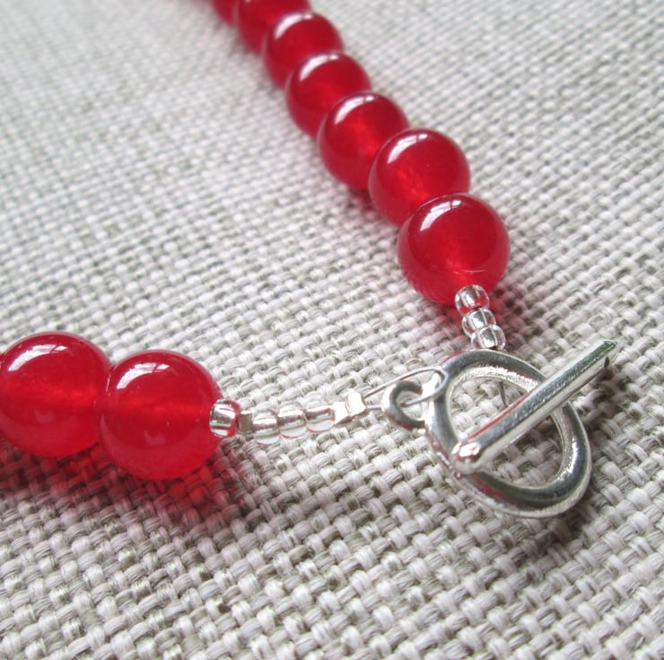 A beautiful necklace made with red Quartzite beads (beads are 10mm in diameter), with a silver-plated toggle clasp. The necklace is approximately 42cm in length (if you would prefer a different length please add a 'note to seller' to your order). A gorgeous necklace for a splash of colour! Coordinating earrings also available.